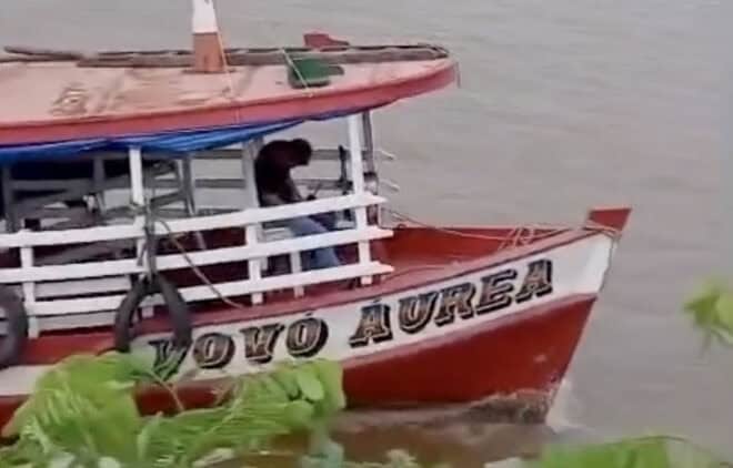 O momento foi registrado em vídeo por testemunhas, que observavam a embarcação seguindo sem controle em direção à margem. Nas imagens, é possível ouvir pessoas gritando desesperadamente para alertar e acordar o condutor, mas a tentativa foi em vão. O barco bateu no barranco e parou de avançar. Um homem conseguiu entrar na embarcação e desligar o motor, evitando danos maiores.