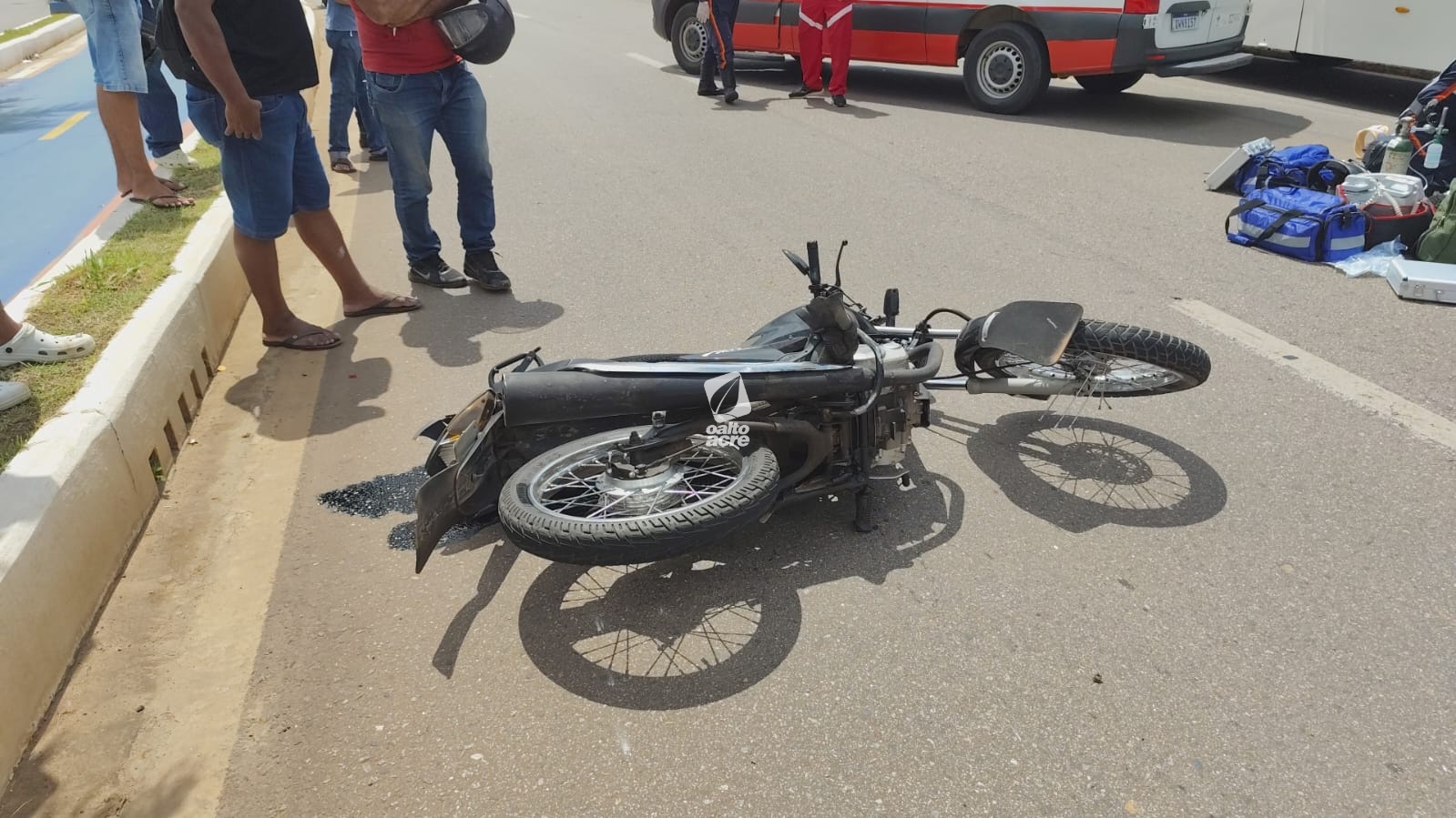 A motocicleta foi retirada do local por um guincho. As circunstâncias do acidente serão analisadas pelas autoridades competentes.