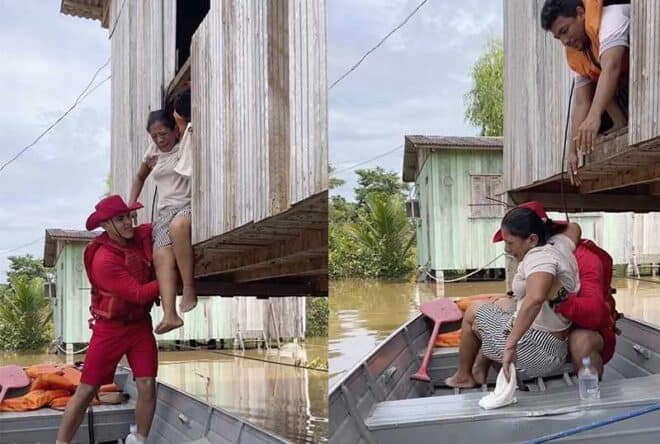 “O resgate foi feito com sucesso, colocamos ela na nossa embarcação e a levamos para área seca, onde seu filho lhe aguardava”, contou o cabo do Corpo de Bombeiros, comandante da guarnição, Felipe Lima.