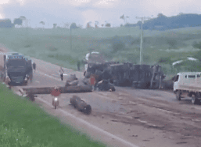 De acordo com um relato de testemunha, que preferiu não se identificar, o caminhão perdeu o controle vindo a tombar ao lado da pista. “Ai, esse acidente aconteceu ali agora há pouco, naquele frigorífico, que fica bem na área que vai para o Quinari”, contou a testemunha, descrevendo a situação.