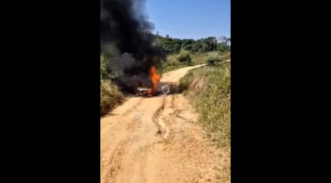 Um carro foi totalmente destruído por um incêndio na tarde deste domingo (31), no Ramal do Rio Pardo, zona rural de Tarauacá, no interior do Acre.