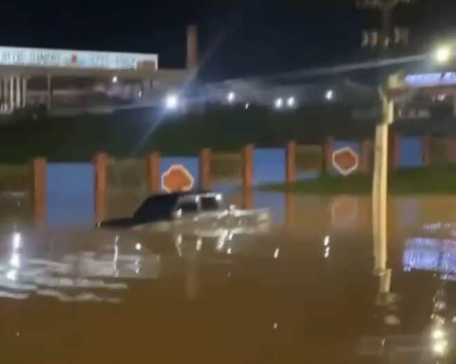 Um vídeo divulgado em uma rede social pela digital influencer Yanna Oliveira neste sábado, mostra uma caminhonete que ficou preso em umas das ruas de Rio Branco que alagaram durante as fortes chuvas.