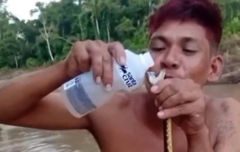 Um vídeo que circula nas redes sociais tem causado indignação ao mostrar um ato de crueldade contra um animal silvestre. Nas imagens, um rapaz aparece em uma canoa, na beira de um rio, segurando uma cobra pequena com as mãos. O animal está com a boca aberta enquanto o jovem despeja um líquido que aparenta ser álcool, rindo da situação.