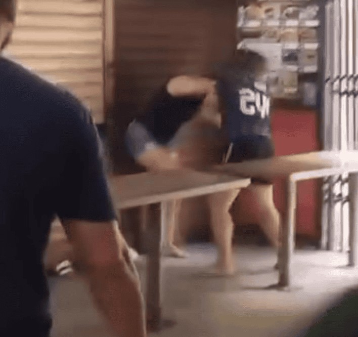 No vídeo é possível ver puxões de cabelo, tapas e socos trocados entre as duas mulheres. Mesmo com muitos curiosos no local, ninguém interviu no embate da dupla que se chocava contra algumas das lojas que se encontravam fechadas.