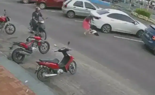 Nas imagens, a mãe da criança aparece do outro lado da avenida e se desespera ao presenciar o atropelamento, gritando e correndo em direção ao local. Ela pega a menina do chão e a segura no colo logo após a colisão.