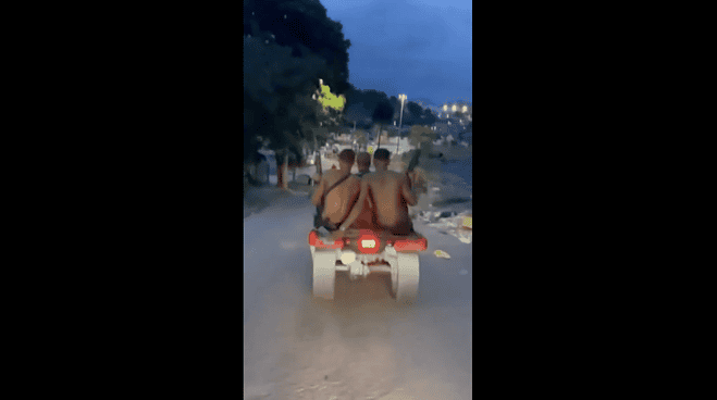 Um vídeo que viralizou nas redes sociais mostra criminosos armados com fuzis circulando livremente de quadriciclo no Complexo da Pedreira, na zona norte do Rio de Janeiro. Segundo a Polícia Militar, um dos bandidos que aparece nas imagens foi preso durante uma operação na comunidade na última sexta-feira (26).