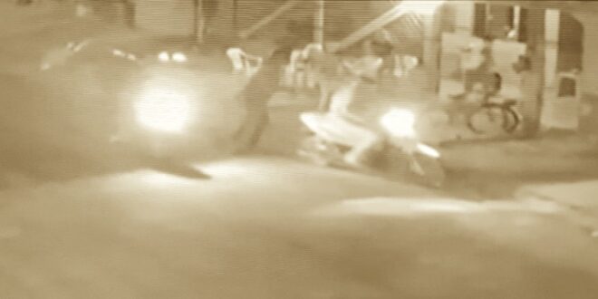 As imagens mostram o momento em que os que estavam nas garupas, descem das motos armados e iniciam os tiros. Kenedy ainda tenda correr, mas é atingindo por um nas costas, altura do coração e lhe tira a vida.