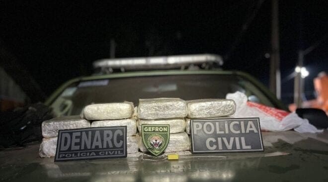 No início da noite do último sábado, 30, uma ação conjunta entre Polícia Civil e Grupo especial de Fronteira (Gefron) prendeu O.O.M. de 33 anos de idade em posse 11 quilos de maconha (Skank) em barreira montada na rodovia BR-317, Estrada do Pacífico no município de Senador Guiomard.