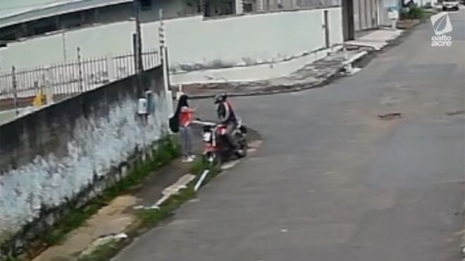 Na manhã desta quinta-feira (24), uma estudante foi alvo de um assalto no bairro Castelo Branco, em Rio Branco, e acabou entrando em luta corporal com o criminoso. A ação foi flagrada por uma câmera de segurança instalada em uma residência na rua Álvaro Alves.