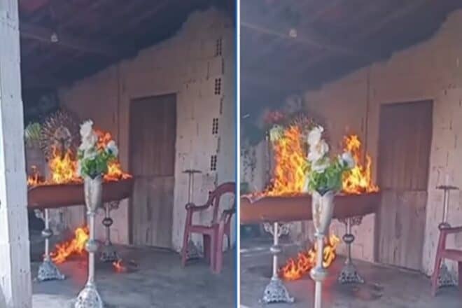 Parentes e amigos do homem morto registraram, em vídeo, o caixão em chamas.