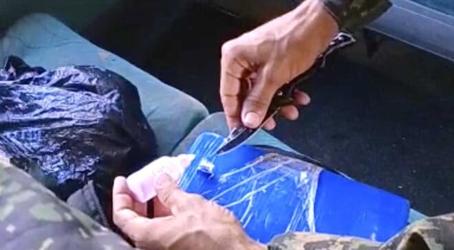 Os policiais logo perceberam que o peso estaria acima do normal e com uma carga além de suspeita. Tão logo abriram as duas mochilas, foi encontrado o motivo do nervosismo.