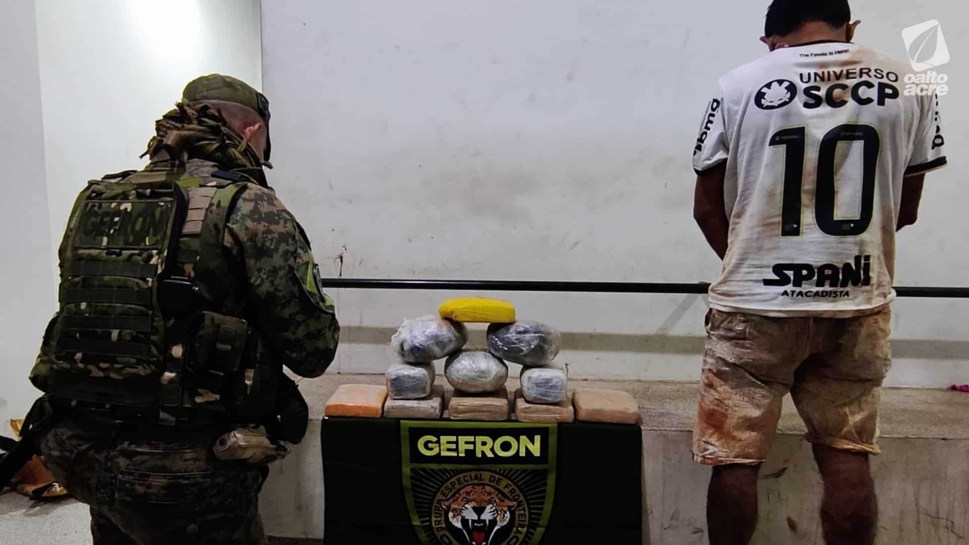 Durante patrulhamento na zona rural do município de Mâncio Lima, a Secretaria de Estado de Justiça e Segurança Pública (Sejusp), por meio do Grupo Especial de Fronteira (Gefron), prendeu um homem por tráfico de drogas. A ação faz parte da Operação Protetor das Divisas e Fronteiras, que visa combater crimes transfronteiriços.