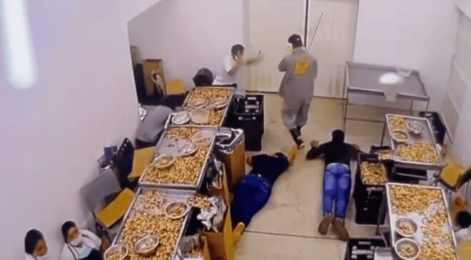 Na manhã desta segunda-feira (20), três criminosos armados invadiram a Indústria de Castanha Tempero do Norte, localizada no Parque Industrial, no Segundo Distrito de Rio Branco. O trio rendeu funcionários e roubou seus pertences.