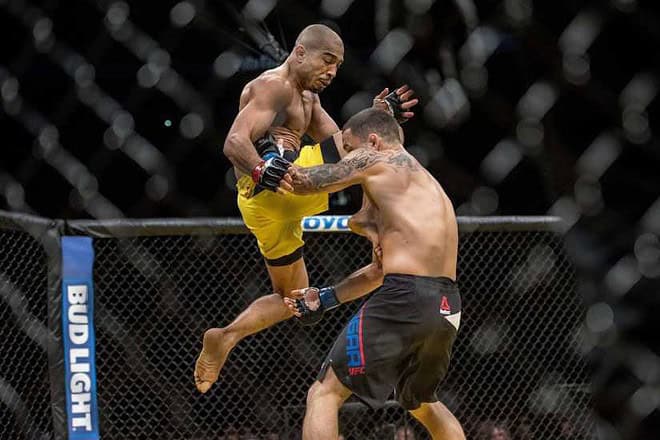 Restou ao árbitro encerrar a luta. Aldo saiu correndo em direção ao público, como já ocorrido há anos no Rio de Janeiro. Explosão de alegria no ginásio! “Quero lutar no dia 11 de maio, em Curitiba. Eu vou estar lá”, ressaltou Aldo ao final do combate.