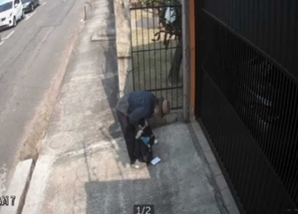 Homem coloca cachorrinha dentro da mochila e foge – Foto: Reprodução