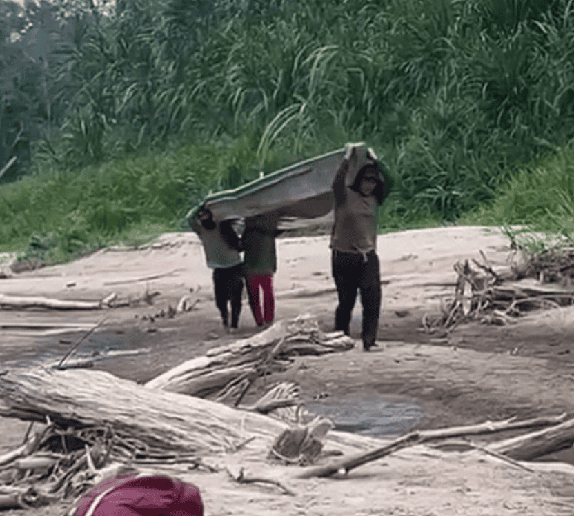 Moradores da região do Alto Rio Jordão precisaram adotar novas medidas com a seca extrema que atinge os rios no Acre. Um vídeo divulgado pelo site Extra do Acre mostra três homens carregando uma canoa nas costas para conseguir continuar suas atividades.