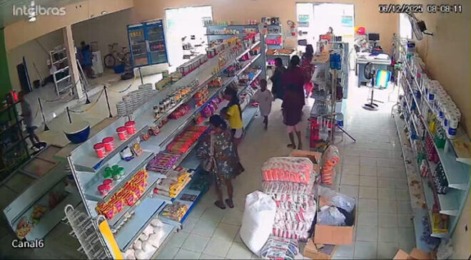 Um vídeo que circula nas redes sociais desde a manhã desta quarta-feira (10) mostra um grupo de indígenas invadindo um comércio no bairro Nair Araújo, em Feijó, no interior do Acre. Nas imagens, é possível ver várias pessoas entrando rapidamente no estabelecimento, pegando produtos das prateleiras e saindo em seguida.