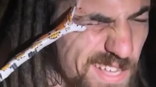 O fotógrafo norte-americano Tom White, autodenominado como “manipulador de répteis exóticos”, levou um susto enquanto gravava um de seus vídeos para o Instagram, em que conta com mais de 21,8 mil seguidores, e acabou mordido por uma cobra no olho direito.