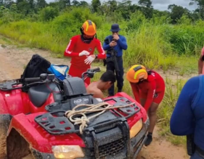 Além de atravessar o Rio Macauã, a equipe percorreu diversos quilômetros de ramais tomados pela lama para resgatar a vítima, em conjunto com o Corpo de Bombeiros. Foto: captada
