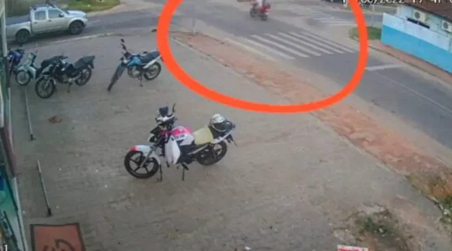 O acidente foi registrado na tarde da última quinta-feira (11), uma câmera de segurança registrou um acidente no cruzamento próximo ao Ministério Público Estadual em Cruzeiro do Sul, quando duas motocicletas se chocaram gravemente.