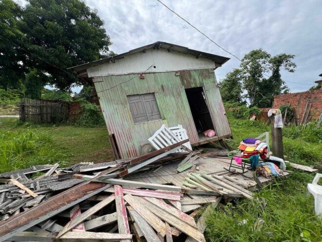 Uma casa desabou na manhã deste sábado, 13, em Rio Branco após as fortes chuvas que atingiram a região no dia anterior.