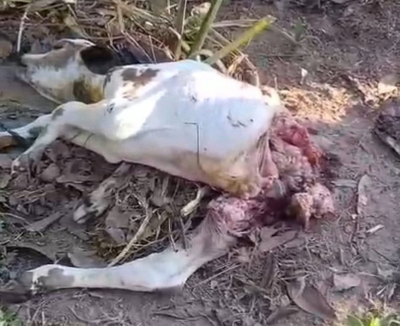 Vídeo que circula em grupos de WhatsApp mostra restos do animal abatido e gera alerta entre produtores da região do Rio Macauã; ataques a rebanhos são comuns em áreas de floresta