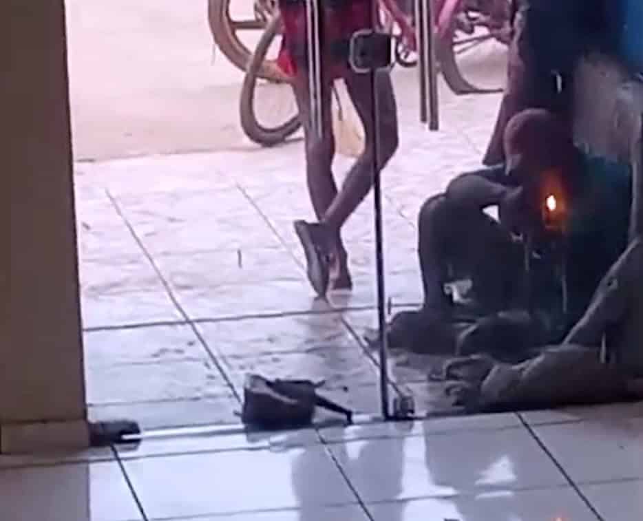Usuários consumem drogas em plena luz do dia na porta do comércio em Brasiléia – Foto/captura