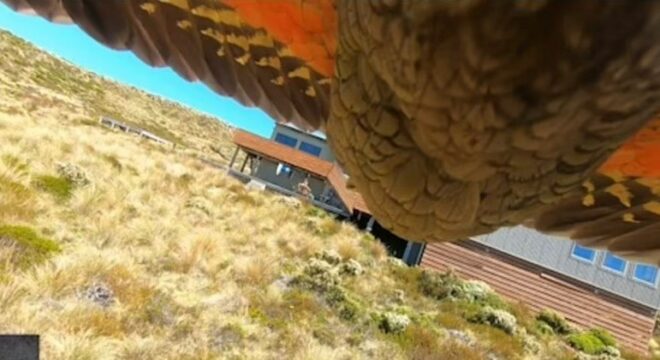 Eles colocaram uma câmera GoPro na sacada da cabana onde estavam, para filmar um papagaio-da-nova-zelândia, conhecidos pela curiosidade e por atacarem rebanhos de cabras.