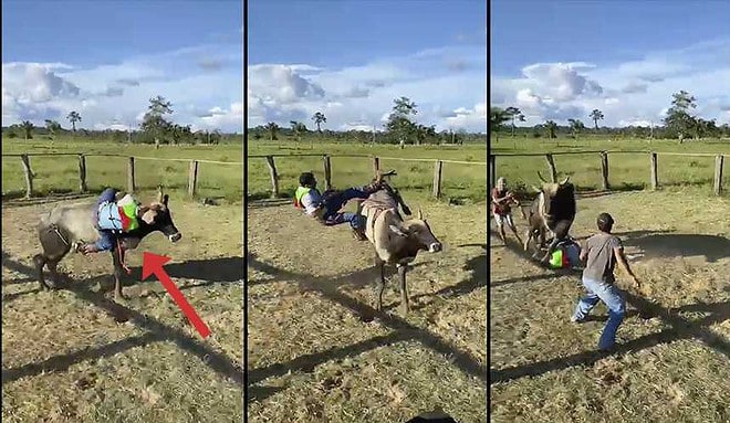 Na sequência, mostra o momento em que Fernando é atingido no pescoço e depois de cair, é pisoteado pelo touro.