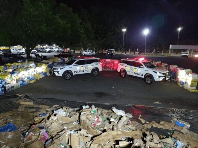A carga era de papelão prensado. Ao abrir a carreta, os agentes encontraram a grande quantidade de tabletes de maconha, que somavam 12.069 quilos.