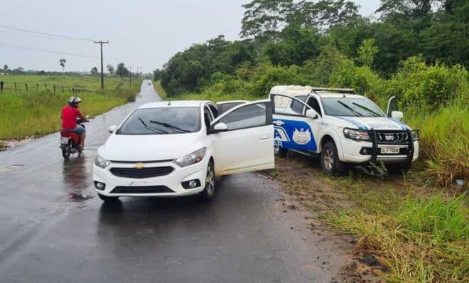 De acordo com a PM, o veículo foi recuperado próximo ao município de Rodrigues Alves.