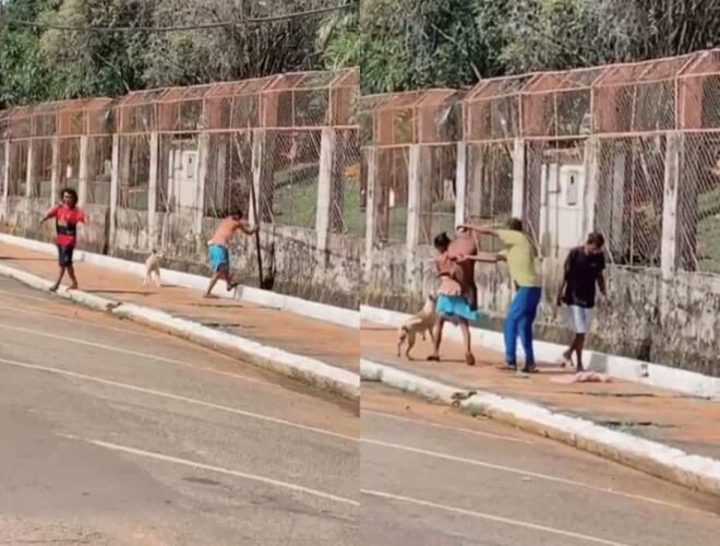 No vídeo é possível ver, que as pessoas, usaram pedaços de madeira para matar o animal.