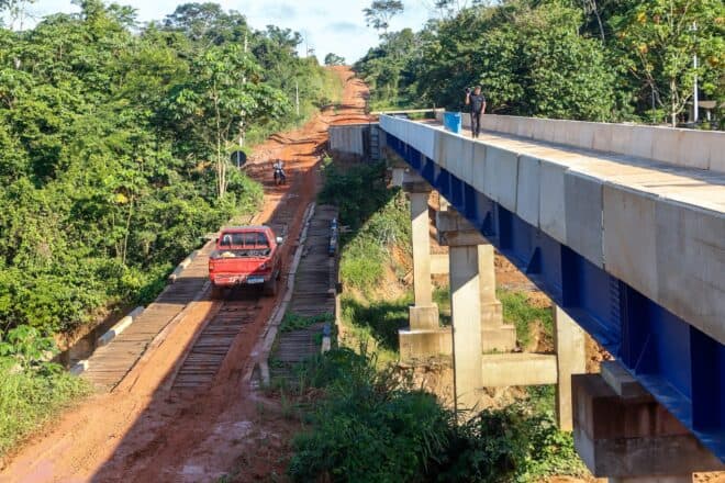O prefeito de Rio Branco, Tião Bocalom, acompanhado do secretário municipal de Infraestrutura, Cid Ferreira, realizou uma visita técnica às obras da ponte sobre o Igarapé Caipora, localizada na região da Transacreana. A construção é considerada uma das mais importantes da área rural, pois vai ligar a comunidade do Caipora aos demais ramais do cinturão verde da capital, atendendo uma demanda histórica dos moradores.