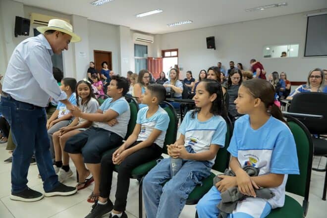 “Esse projeto é um projeto de cidadania, onde o aluno da escola pública municipal tem acesso a informações sobre os tributos municipais”, afirmou Wilson Leite. (Foto: Val Fernandes/Secom)