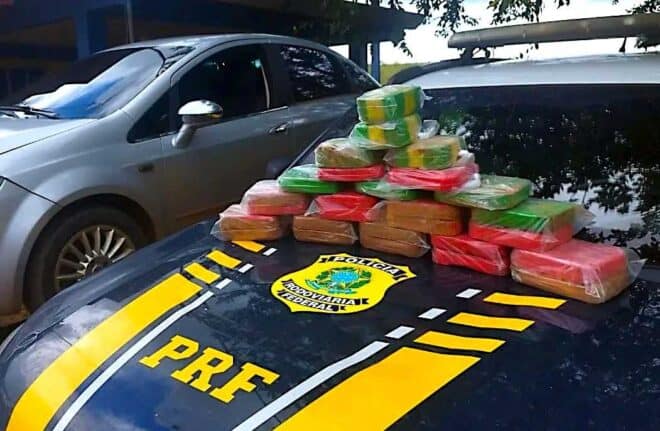 Desta forma, a equipe decidiu aprofundar mais o procedimento de fiscalização e, após verificações, foi constatado que em compartimentos ocultos na estrutura do automóvel estava escondida a quantidade de aproximadamente 28,06 kg de substância análoga à pasta base de cocaína, envolvida em 27 invólucros em formato de tabletes.