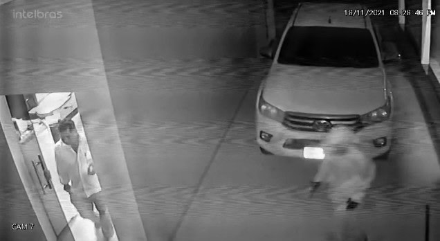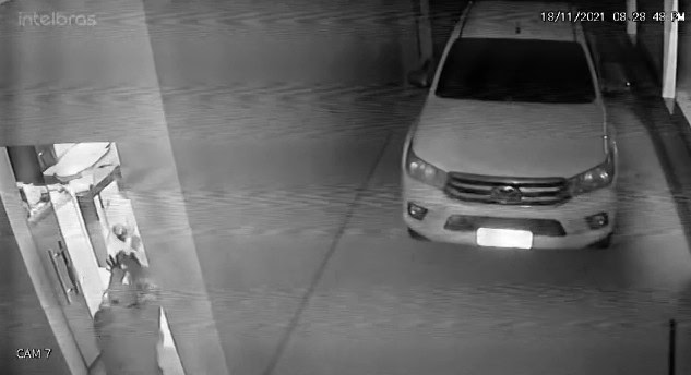 Confirmando a versão apresentada pela vítima, as imagens mostram o vilhenense olhando a picape Hilux na garagem e, em seguida, com uma pistola ponto 40 na mão, indo em direção à cozinha. O vídeo também revela que o ladrão encontra de frente o dono da casa e do veículo. A vítima faz dois disparos, e o segundo atinge a cabeça do vilhenense, que cai. Os dois comparsas dele saem correndo.