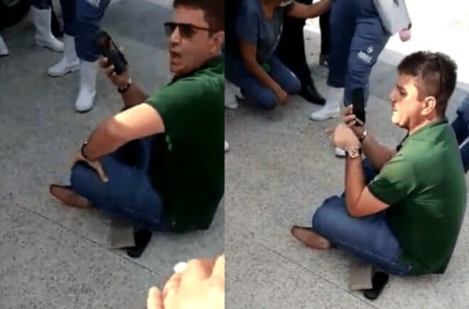 Um vídeo que circula nas redes sociais mostra o governador Gladson Cameli (Progressistas) sentado no chão, realizando chamadas telefônicas para membros de sua equipe para tirar satisfações sobre o não pagamento de funcionários terceirizados da empresa Maia & Pimentel.