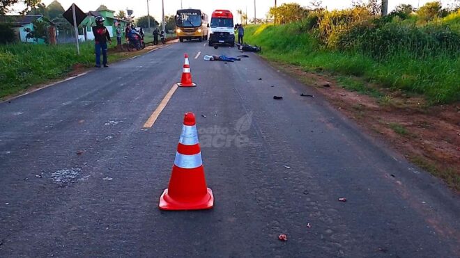 Um grave acidente envolvendo um caminhão boiadeiro e uma motocicleta resultou na morte de Edberto Souza Silva, de 33 anos, na madrugada desta quinta-feira (13), no km 3 da rodovia AC-90, estrada Transacreana.