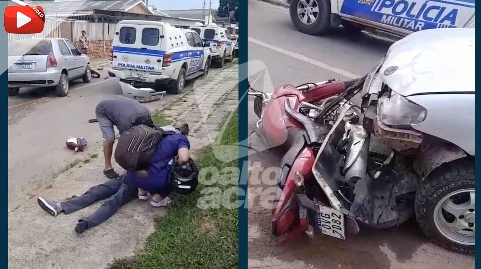 Vídeos: Mais um acidente em cruzamento de Brasiléia deixa motociclista ferido