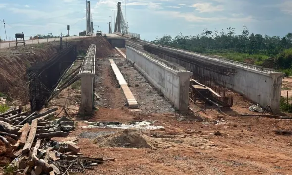 As vigas da obra de extensão da ponte sobre o Rio Tarauacá, na BR-364, estão sendo demolidas e precisarão ser reconstruídas. A intervenção, que tem investimento superior a R$ 8 milhões, começou em março de 2024 e tinha previsão de conclusão em um ano, mas o prazo foi adiado para março de 2026.