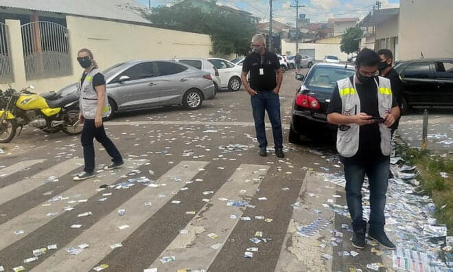 “A Lei das Eleições 9.504/97 proíbe a distribuição de material publicitário próximo aos locais de votação, considerando essa prática crime. As penalidades incluem multa e, em casos mais graves, pena de seis meses a um ano de prisão. Além disso, o descarte de ‘santinhos’ pode também ser enquadrado como crime ambiental”, destaca.