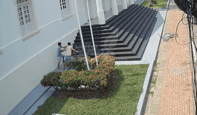Davi, mesmo ferido, corre para o outro lado da via em direção a Assembléia Legislativa. A partir daí as imagens não mostram, mas a vítima foi socorrida pelo SAMU.