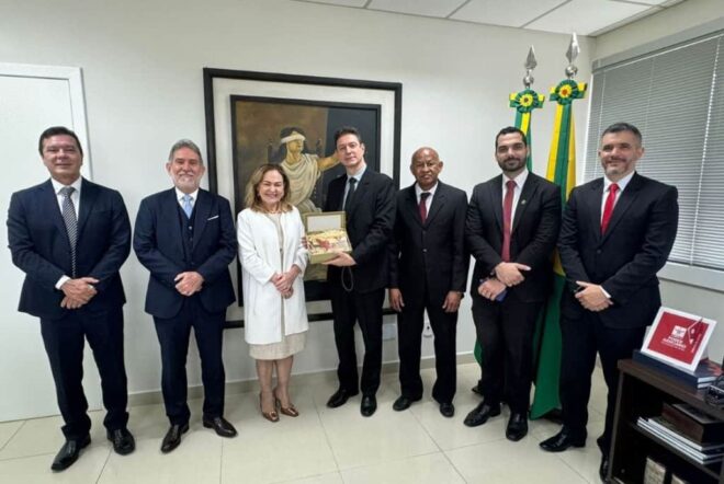 A visita institucional foi acompanhada do vice-presidente, desembargador Luís Camolez, e do corregedor-geral da Justiça, desembargador Samoel Evangelista.