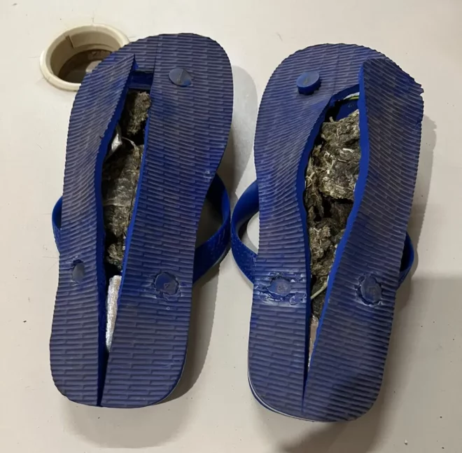 Visitantes são pegas tentando entrar em presídio no AC com droga escondida dentro de sandálias — Foto: Divulgação/Iapen