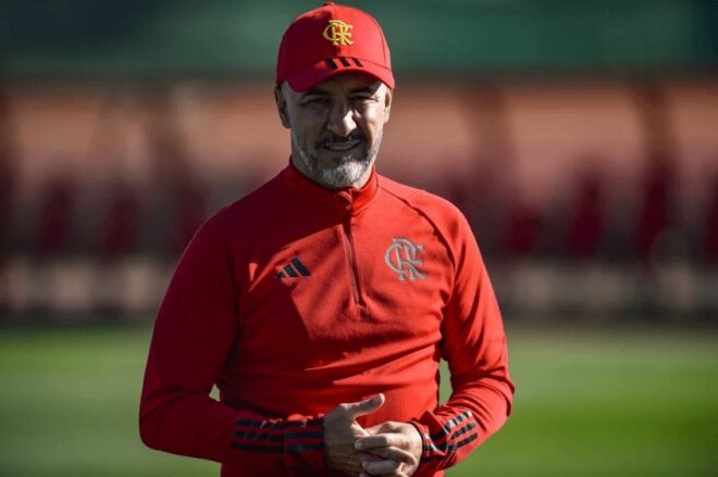 Dessa forma, o português pode mandar a seguinte equipe a campo: Santos, Fabrício Bruno, Rodrigo Caio e Léo Pereira (Pablo); Varela (Matheuzinho), Ayrton Lucas, Vidal, Gerson, Everton Ribeiro e Arrascaeta; Gabigol.