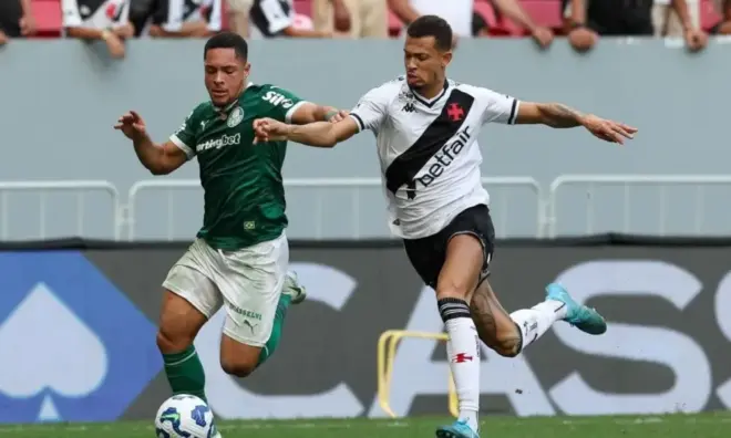 Solta a carta! Na tarde deste domingo (4), o Palmeiras venceu o Vasco, em jogo disputado no Mané Garrincha, em Brasília, pela sétima rodada do Campeonato Brasileiro. O único gol da vitória palestrina foi anotado por Vitor Roque, que fez seu primeiro gol pelo clube.