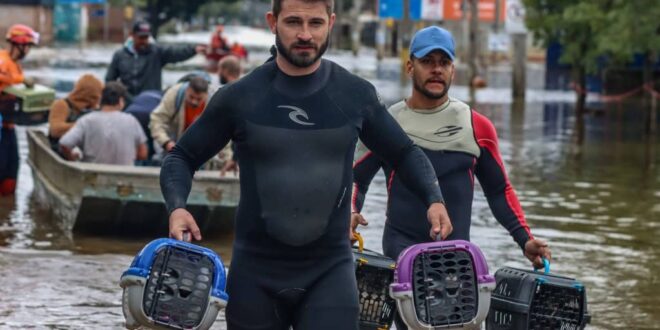 Para ajudar a acolher esse contingente, mais de 20 toneladas de ração doadas para o Rio Grande do Sul, para alimentar os cães e gatos vítimas das enchentes, chegaram no avião cargueiro KC-390 Millennium da Força Aérea Brasileira (FAB), enviado pelo governo federal, que também levou itens essenciais para pets, como caixas de transporte, camas e bebedouros. Campanhas de adoção de animais também têm sido estimuladas pelas redes sociais, com adesão em todo o país.