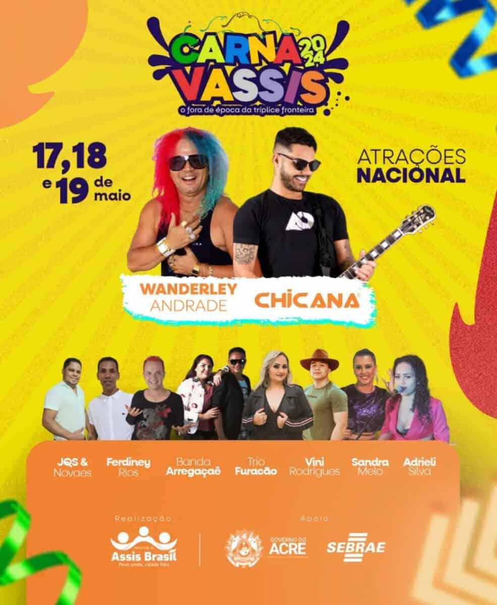 Com uma programação repleta de estrelas da música, o CarnaVassis promete ser diferente agradando todos os gostos. Entre os destaques estão o renomado Rei do Brega do Norte, cantor Wanderley Andrade e a empolgante banda baiana Chicana, prontos para fazer o público vibrar ao som de seus sucessos.