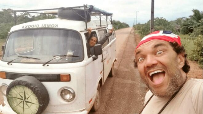 O casal de aventureiros Ghaidy Souza e Marcio Assis, que acompanhados do cachorro Paçoca cruzam o Brasil a bordo de uma Kombi, foram surpreendidos pelos problemas de infraestrutura das estradas no Acre.