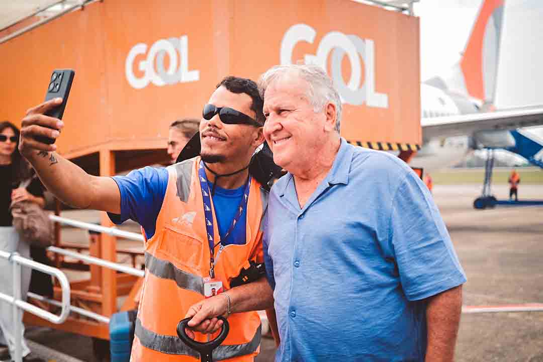 Simpático e atencioso, Zico distribuiu sorrisos, cumprimentou admiradores e posou para fotos com fãs e policiais militares. No hotel onde ficou hospedado, a cena se repetiu: filas de torcedores se formaram em busca de um registro ao lado do ídolo, que fez questão de atender a todos.